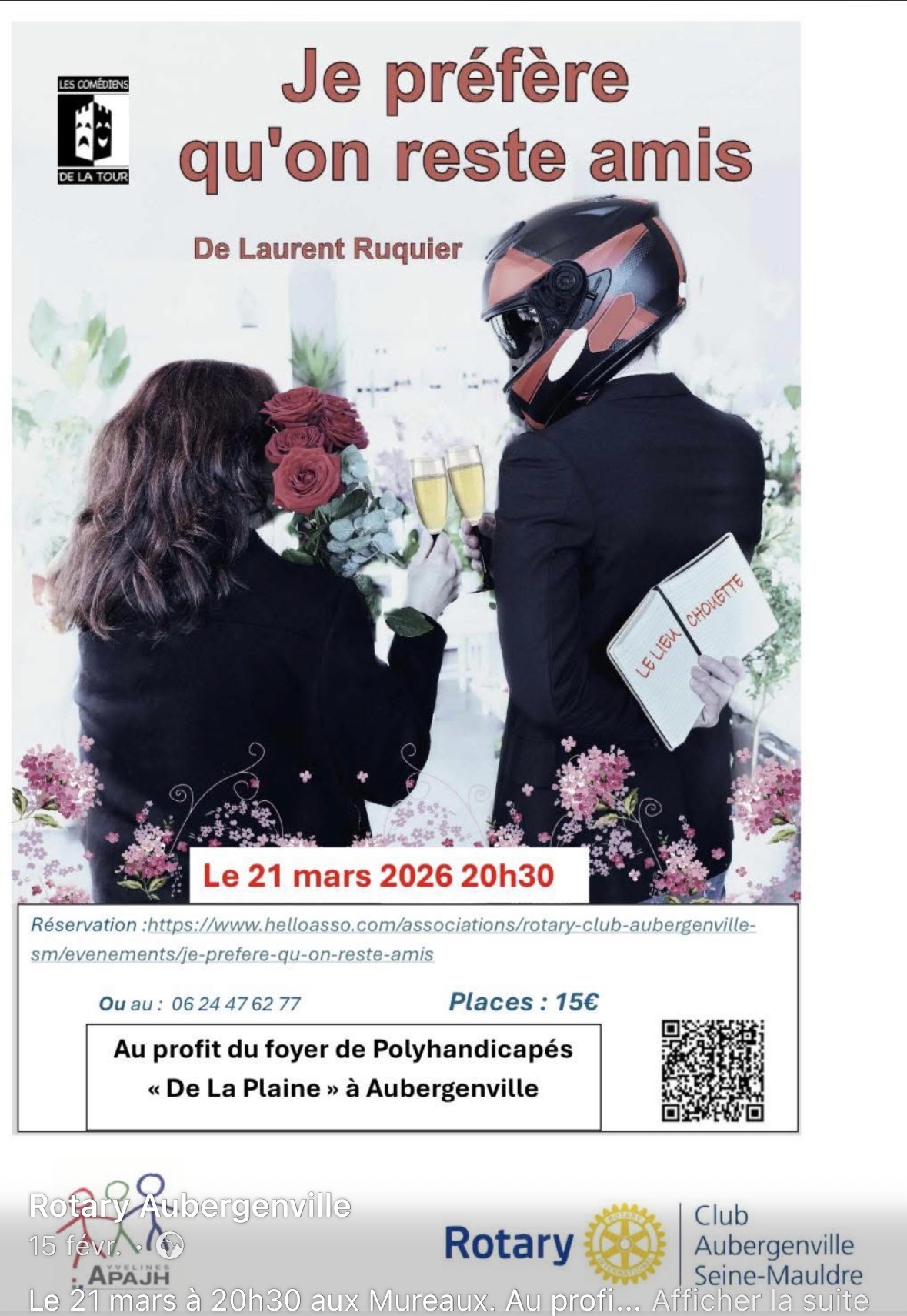 Théâtre Je préfère qu’on reste amis, au profit du Foyer Polyhandicapé de la Plaine - 21 mars 2026